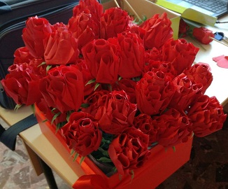 Utilizzando come sfondo i lavori artistici (CARTELLONI), gli alunni si sono esibiti in CANTI, BALLI e RECITAZIONE, e hanno presentato lavori digitali con riflessioni e approfondimenti personali, oltre a lavori di origami (ROSE)