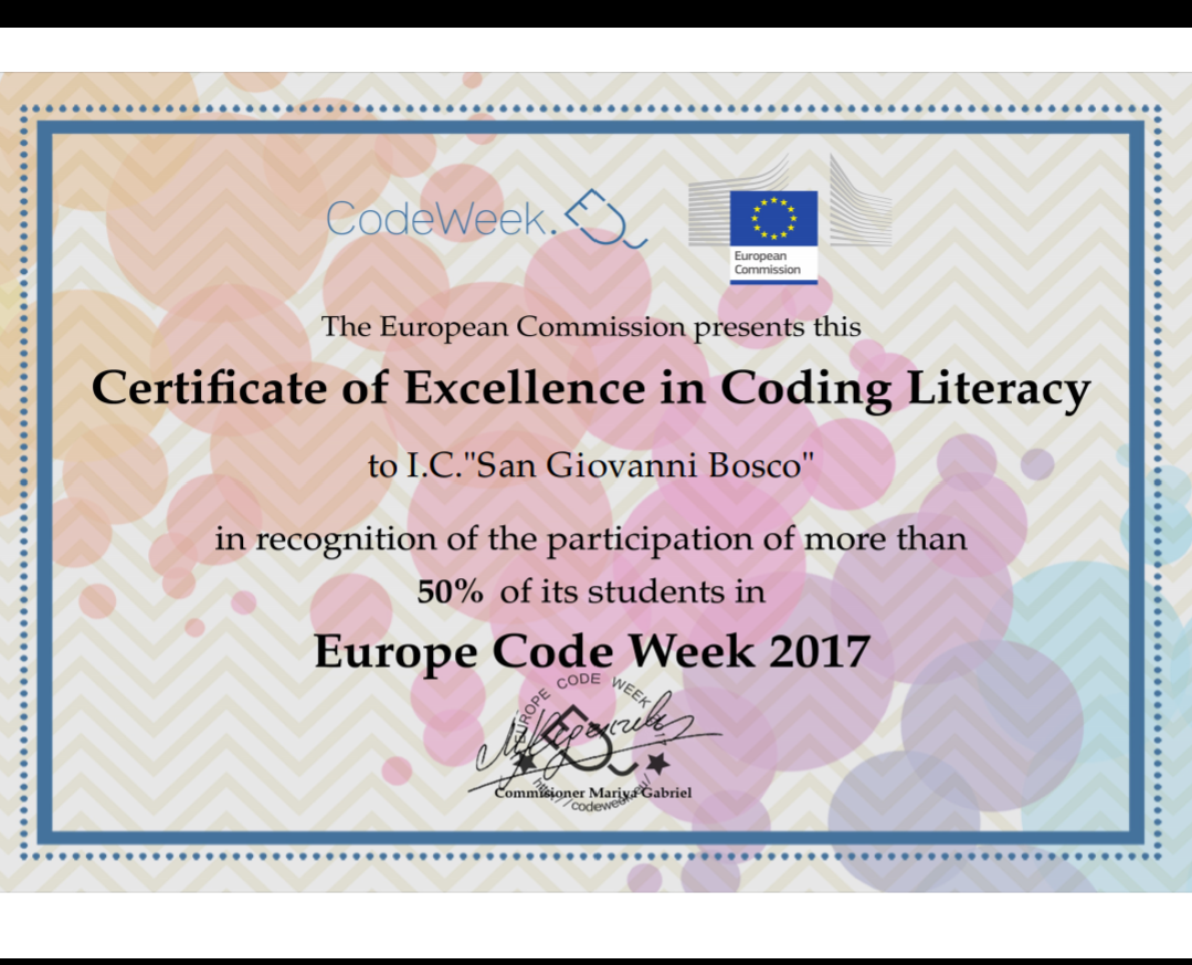 dell'Istituto Comprensivo "San Giovanni Bosco" hanno partecipato alla 5^ edizione di EUROPE CODE-WEEK,